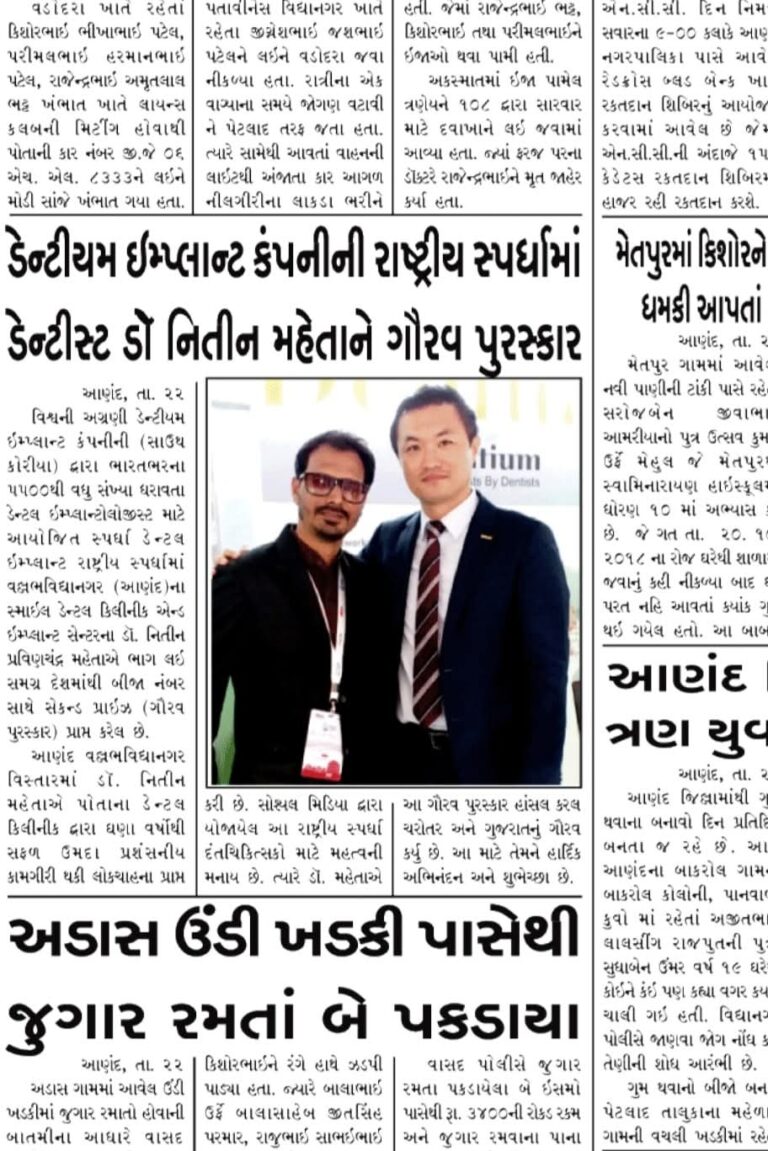 Dr. Nitin Mehta’s Smile Dental Clinic & Implant Center is regarded as one of the best dental clinics in Anand Gujarat.